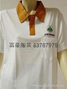 此款高档T恤,为我公司近期  推出,款式简洁,强调实用、大方,图中的面料可采用全棉、CVC、TC65*35、TC、全涤、丝光棉等多种面料;透气吸汗,挺刮耐磨,经久耐用;该产品尤其适合用于各类企业、事业单位制做制服工作,产品质量符合国家GB标准。